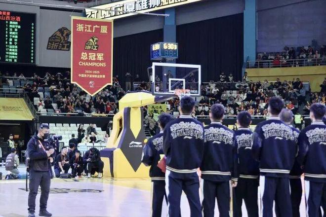 从球员到俱乐部工作人员,每一位都收获了专属总冠军戒指;当“浙江广厦——总冠军”旗帜缓缓升上黄龙体育馆顶部,胡金秋眼中泛起泪花,夺冠路上的艰难困苦和坚韧瞬间,历历在目。正如主教练王博所言:总冠军是荣誉的过往,更是新征程的激励奋起。